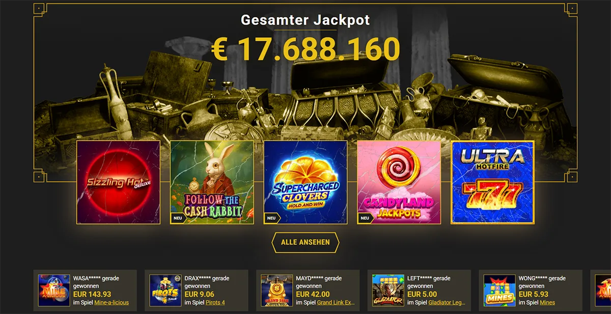 Im Portfolio der Automatenspiele befinden sich tausende von Online-Slots. Es beginnt mit klassischen Slots mit drei Walzen, geht über Premium-Spiele mit Bonus Features, HD-Titel bis hin zu Jackpots. Das Angebot ist so groß wie divers.