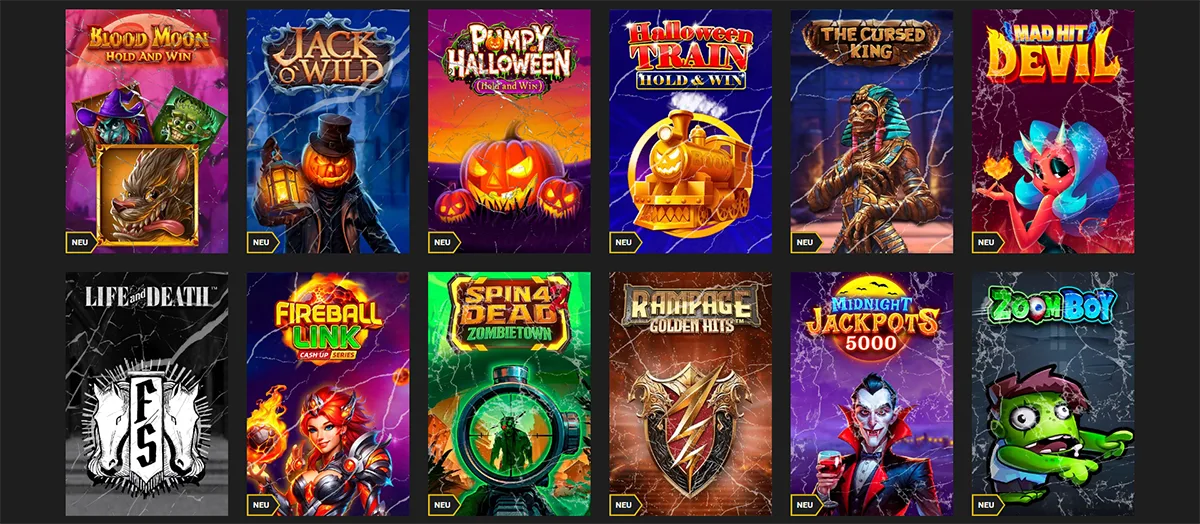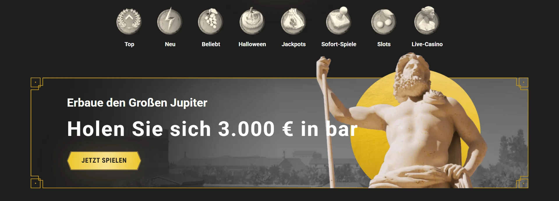 | Spieletypen | Slots, Tischspiele, Live Casino, Jackpots |